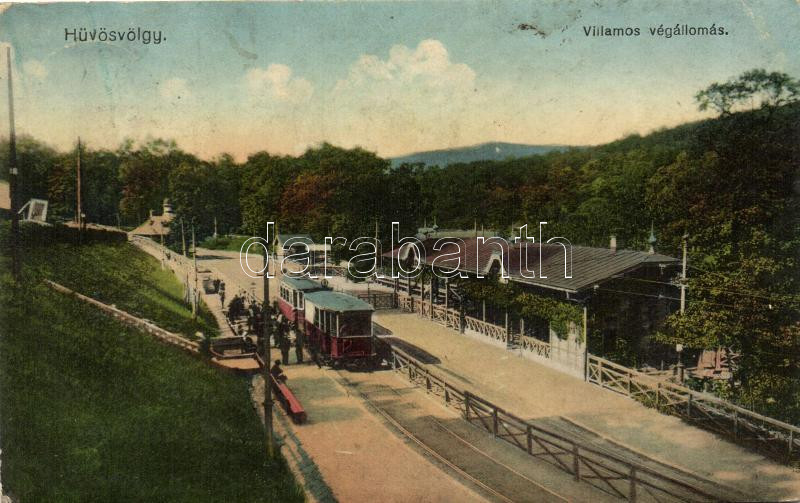 Leírás: Budapest II. Hűvösvölgy, villamos végállomás, kiadja Földessy Gézáné (EK)