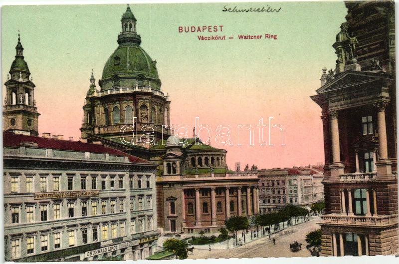 Leírás: Budapest V. Váci körút, Weissmayer Brunó Fuvarleveleket felülvizsgáló irodája, Kálmán és Heller és Grünwald Lipót üzlete