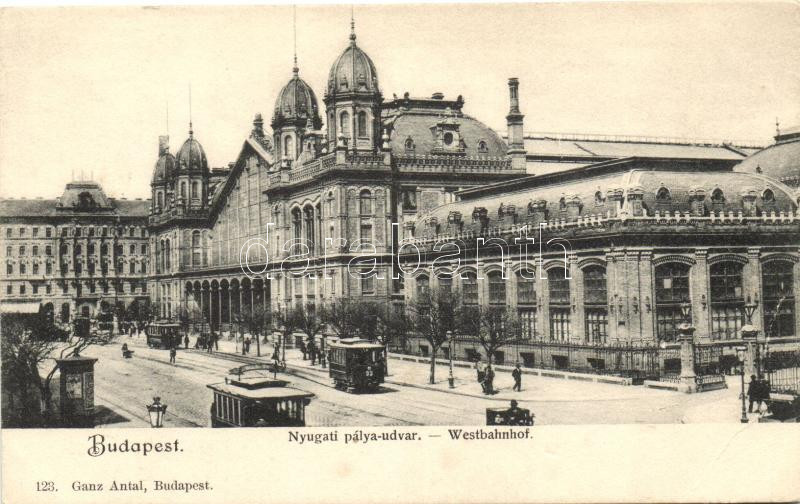 Budapest VI. Nyugati pályaudvar, villamosok, kiadja Ganz Antal (EB) https://www.darabanth.com/hu/270-Gyorsarveres/270.0/Kepeslapok/Magyarorszag~300013/Budapest-VI-Nyugati-palyaudvar-villamosok-kiadja-Ganz-Antal-EB~II1365053