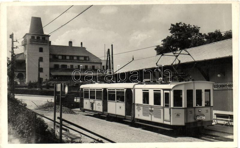 Leírás: Budapest XII. Széchenyi-hegy, Svábhegyi fogaskerekű vasút végállomása, Vörös Csillag szálló (vágott / cut)