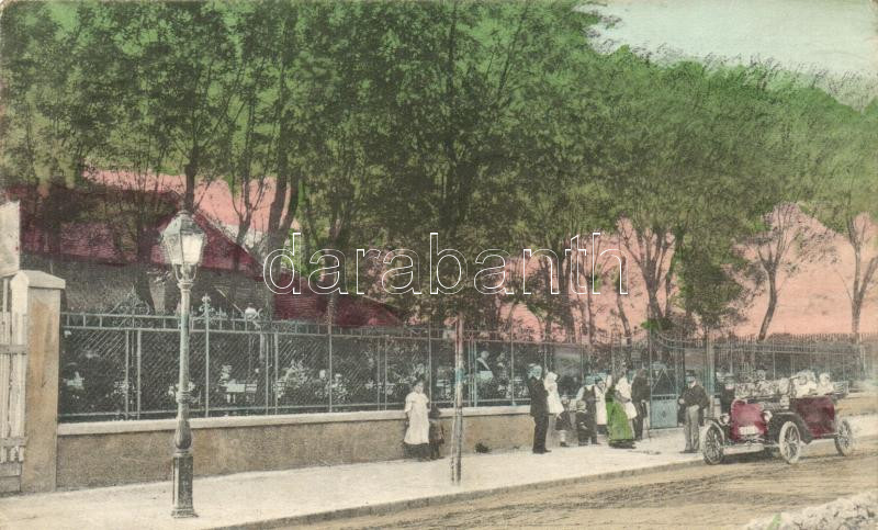 Leírás: Budapest XIV. Schrettner Márton vendéglője, automobil, Zugló, Gyarmat utca 42. (EK)