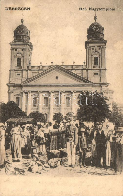 Leírás: Debrecen, Református nagytemplom, piac; Antalfy József kiadása (EB)