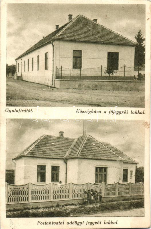 Gyulafirátót, Községháza a főjegyzői lakkal, postahivatal adóügyi jegy... https://www.darabanth.com/hu/270-Gyorsarveres/270.0/Kepeslapok/Magyarorszag~300013/Gyulafiratot-Kozseghaza-a-fojegyzoi-lakkal-postahivatal-adougyi-jegyzoi-lakkal-kiadja-K~II1365690