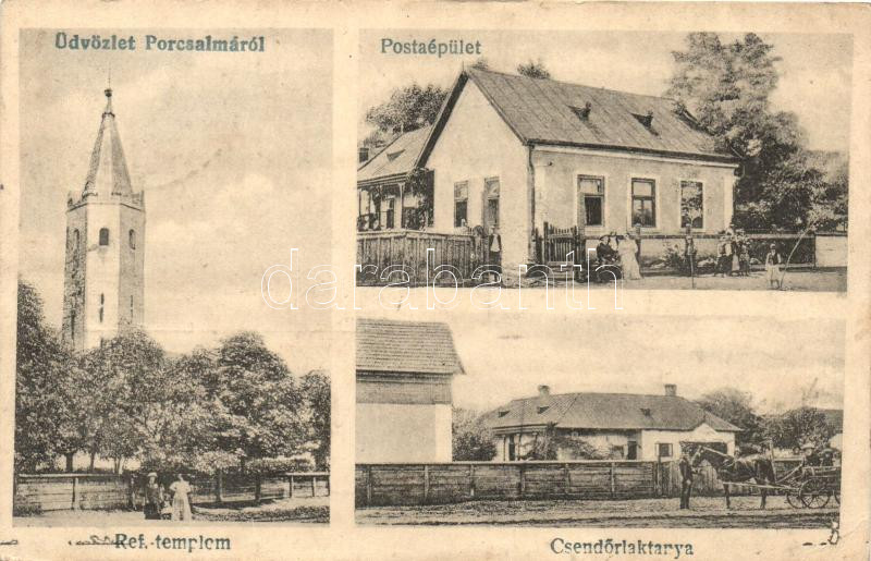 Porcsalma, Posta, csendőrlaktanya, református templom https://www.darabanth.com/hu/270-Gyorsarveres/270.0/Kepeslapok/Magyarorszag~300013/Porcsalma-Posta-csendorlaktanya-reformatus-templom~II1364058