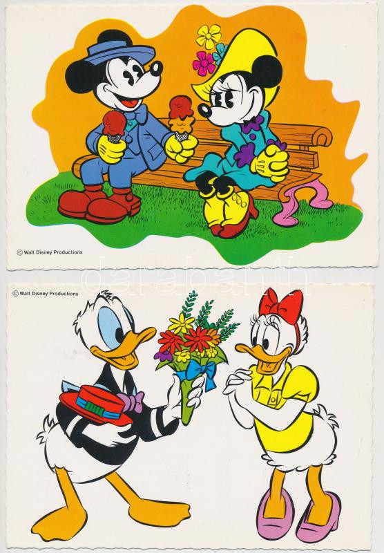 Leírás: 14 db MODERN használatlan rajzfilmfigurás motívumlap, sok Disney / 14 modern unused cartoon motive cards, many Disney