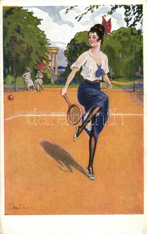 Female tennis player, artist signed (EK) https://www.darabanth.com/hu/270-Gyorsarveres/270.0/Kepeslapok/Sport~300099/Female-tennis-player-artist-signed-EK~II1365198