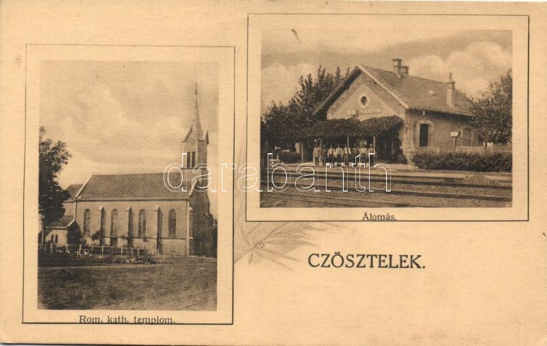 Leírás: Csősztelek, Cestereg; Katolikus templom, vasútállomás / catholic church, railway station