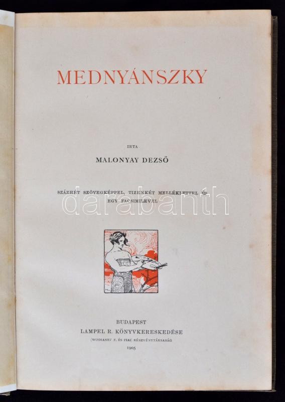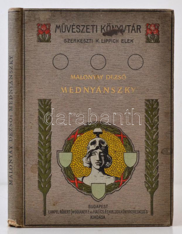 Malonay Dezső: Mednyánszky. Művészeti Könyvtár. Budapest, 1905, Lampel Róbert (Wodianer F. és Fiai) Cs. és Kir. Udv. Könyvkereskedés. Kiadói festett, dombornyomott egészávszon kötés, 127 p. Számos illusztrációval. A borítója foltos, kopottas. A gerince picit sérült. A lapok foltosak. Az elülső előzéklapon tulajdonosi névbejegyzés.