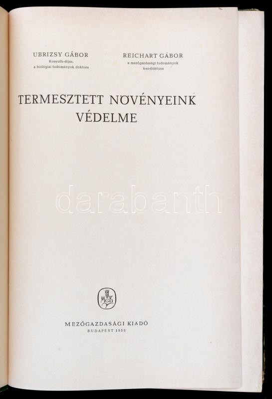 Ubrizsy Gábor - Reichart Gábor: Természeti Növényeink védelme. Budapest,1958, Mezőgazdasági Kiadó. Kiadói félvászon, 447 p. A borító szélei kopottak. A gerince megfakult.
