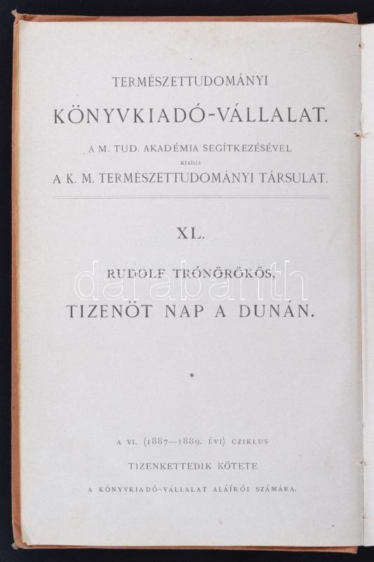 Leírás: Rudolf trónörökös főherceg: Tizenöt nap a Dunán. Bp., 1890, A K. M. Természettudományi Társulat. Kissé foltos kiadói karton kötésben.