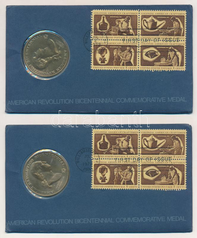 Amerikai Egyesült Államok 1972. "Amerikai függetlenségi háború bicentenáriuma - George Washington" aranyozott fém emlékérem bélyeges borítékon, elsőnapi bélyegzéssel (2x) T:1 USA 1972. "American Revolution Bicentennial - George Washington" coin letter with FDC stamp (2x) C:UNC