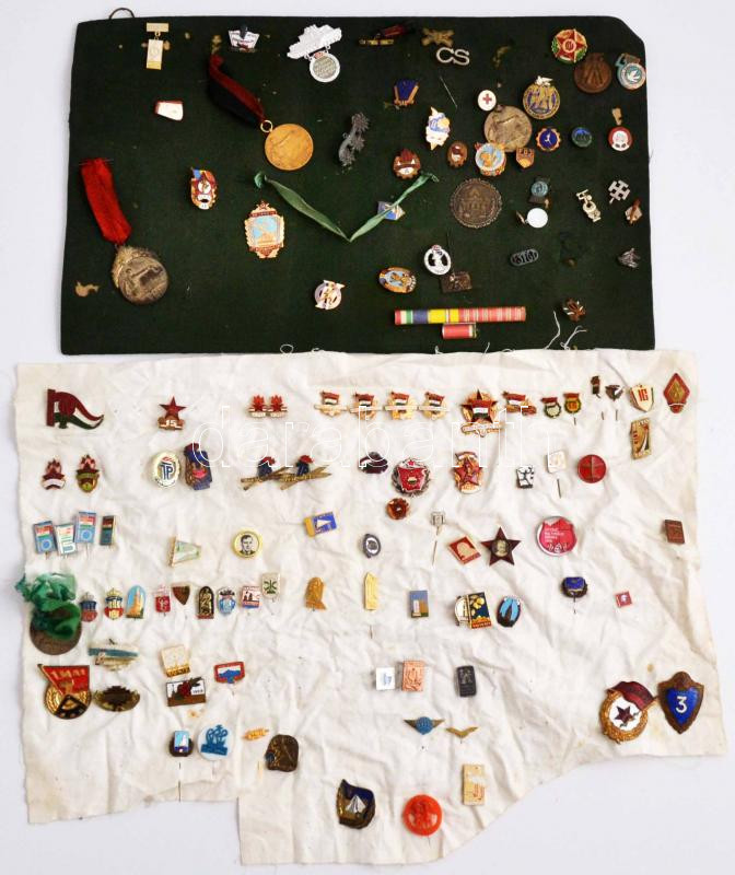~120pcs mixe military and civilian badges and pins from the socialist era, with DDR 1966. "10th Anniversary of the National Peoples Army 1956-1966" badge, Hungary 1966. "Budapest Art Weeks Festival 1966" pin, Romania 1959. "2nd Youth Festival - Timisoara" C:mixed