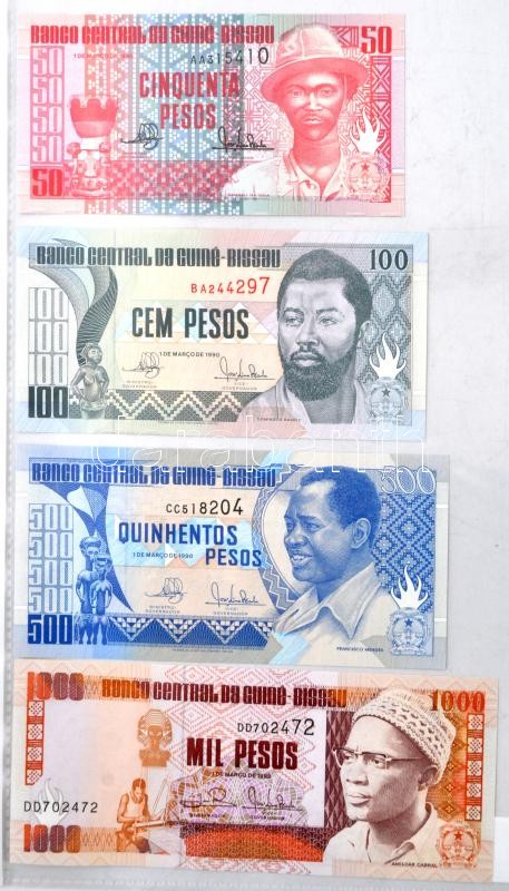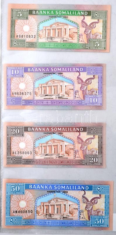 87db-os vegyes afrikai országok bankjegy gyűjteménye, közte egyiptomi, szomáliai, bissau-guineai és ugandai bankjegyek, gyűrűs mappában. Színes, érdekes, ország szerint rendezett anyag, érdemes megtekinteni! T:I - II- 87pcs collection of various banknotes from African countries, among them Egyptian, Somalian, Bissau-Guinean and Ugandan banknotes, in binder. Interesting, colorful lot of banknotes ordered by country, well worth seeing! C:UNC-VF
