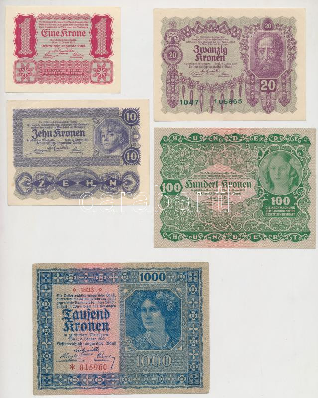 Leírás: Ausztria 1922. 1K + 10K + 20K + 100K + 1000K T:I,I-,III