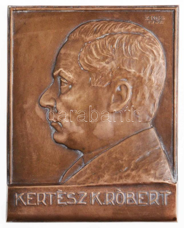 Leírás: Zombori Kiss István (1902-1953) 1932. "Kertész K. Róbert" Br lemezplakett (90x113,5mm) T:2