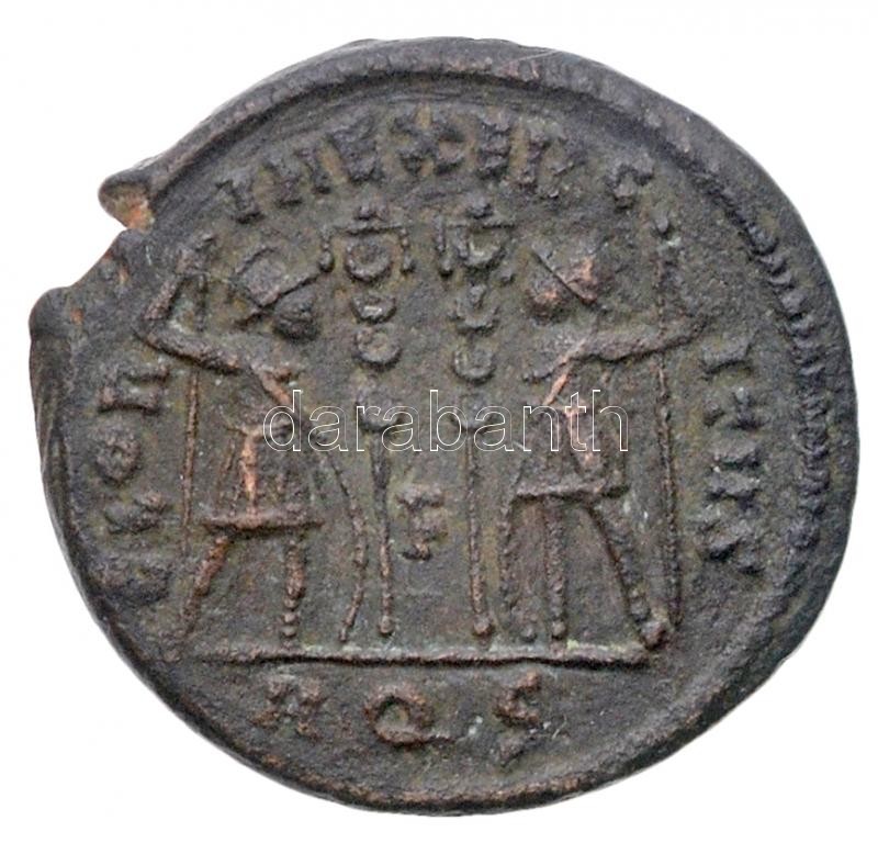 Leírás: Római Birodalom / Aquileia / II. Constantius 335-336. Follis Br (2,00g) T:2- ph. Roman Empire / Aquileia / Constantius II 335-336. Follis Br "FL IVL CONSTANTIVS NOB C / GLOR-IA EXERC-ITVS - F - AQS" (2,00g) C:VF edge error