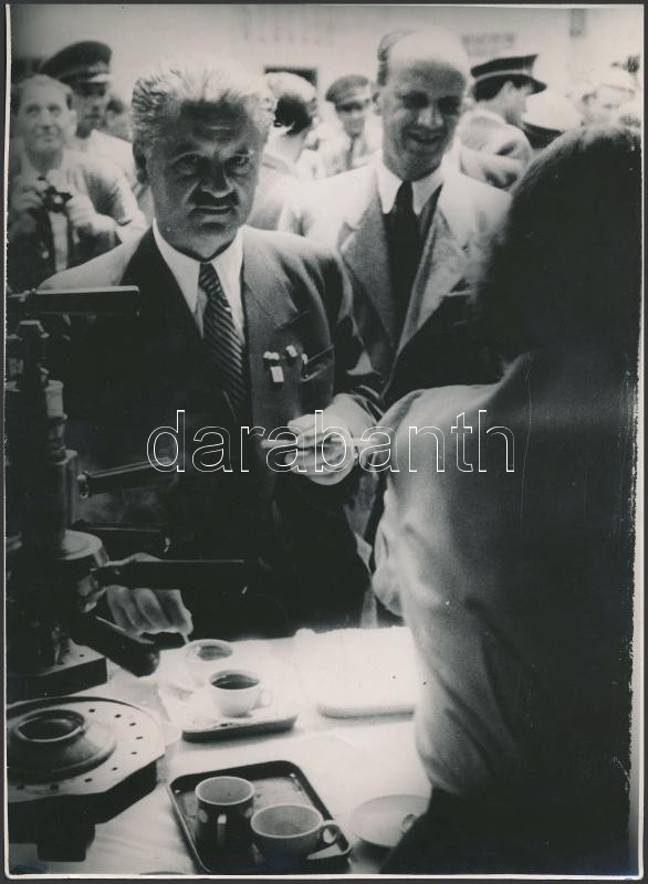 Leírás: 1948 Tildy Zoltán(1889-1961) a Stühmer gyár igazgatójának társaságában, kertész Sajtófotó Képszolgálat, pecséttel jelzett, hátoldalon feliratozva, 23x17 cm