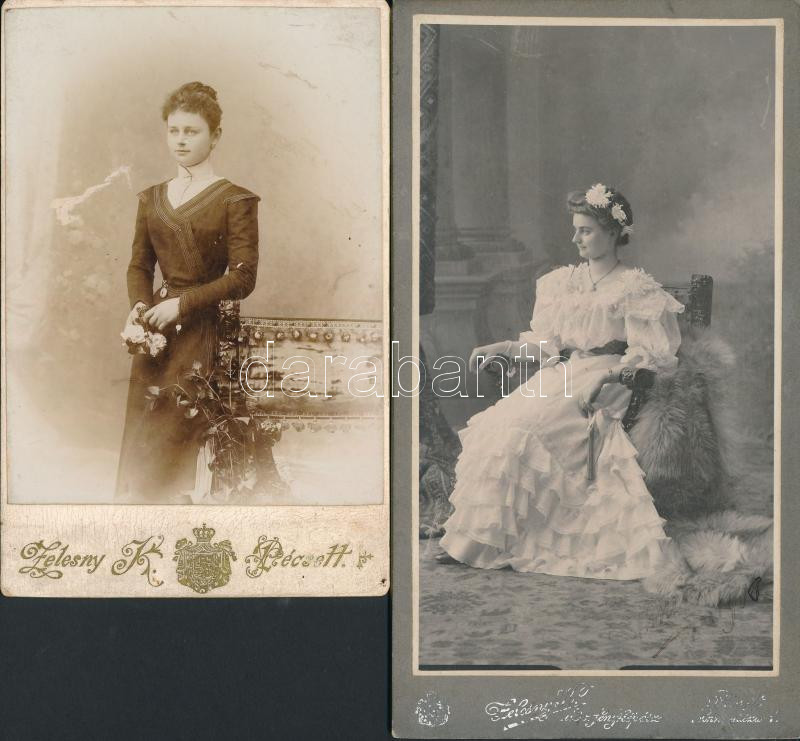 Leírás: cca 1906 Vindornyalaki Hertelendy Mária és Nelly, 2 db keményhátú fotó, 17x11 és 21x11 cm