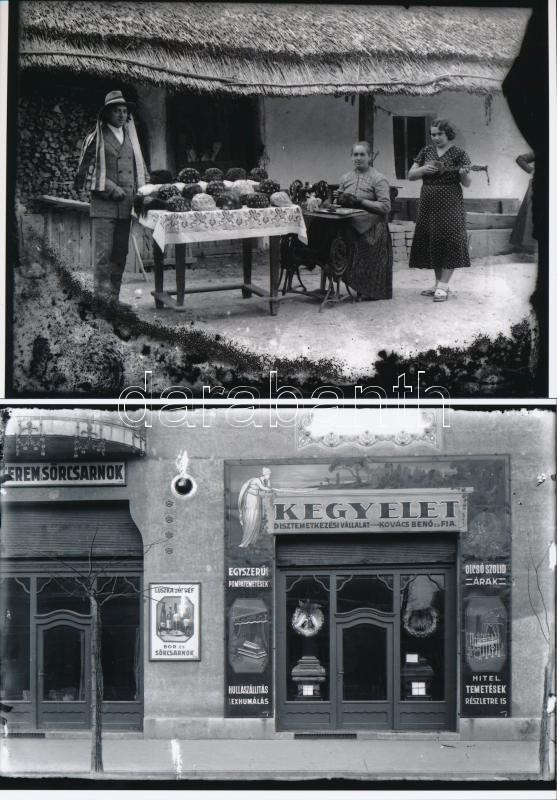 cca 1936 Üzletek, vállalkozások Bács-Kiskun megyében, Lőcsei Árpád kecskeméti vándorfényképész hagyatékában őrzött 7 db üveglemez negatívról készült modern nagyítások, 13x18 cm