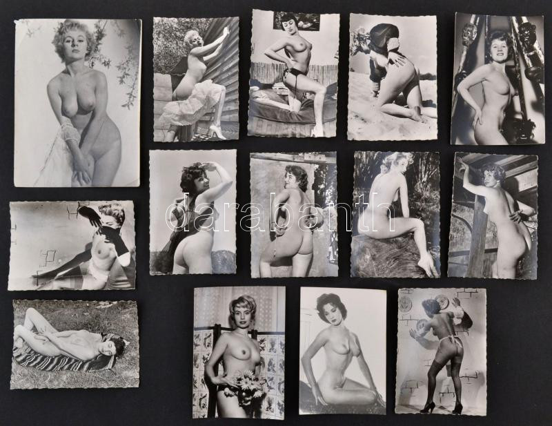 Leírás: cca 1950 Kikapós lányok, vegyes akt fotó tétel, 14db, cca 9x7cm