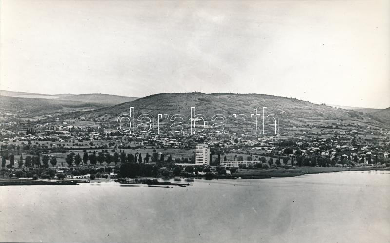 Leírás: cca 1965 Balatonfüred, A tervezett ,,idény"szálló perspektivikus képe, vintage fotó belerajzolva a tervezett szálloda, 18x29 cm