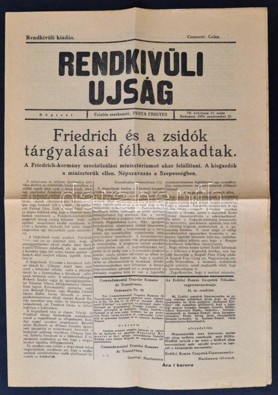 1919 A Rendkívüli újság szeptember 27-i száma a zavaros idők híreivel https://www.darabanth.com/hu/271-Gyorsarveres/271.0/Festmeny-mutargy-papirregiseg-egyeb/Nyomtatvanyok~32/1919-A-Rendkivuli-ujsag-szeptember-27-i-szama-a-zavaros-idok-hireivel~II1370016