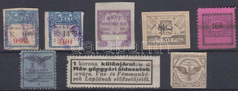 Leírás: Budapesti Közlekedési Vasút Társaság (BKVT) bérletjegyei és segélybélyegei 8 klf bélyeg