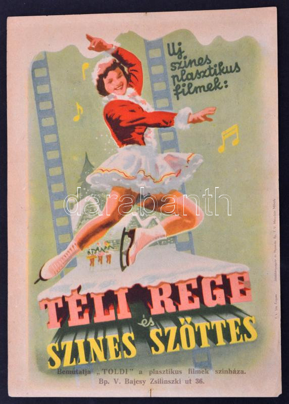 Leírás: Téli rege és Színes szőttes, Új, színes plasztikus filmek, "Toldi" reklámnyomtatvány, 24x17cm