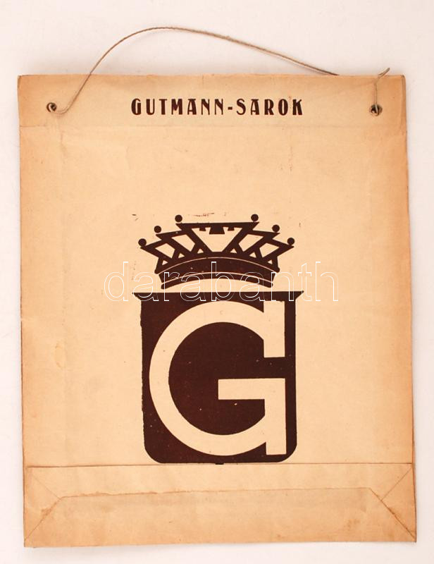 cca 1930 Bp., Gutmann sarok. Reklámgrafikával díszített papírtáska https://www.darabanth.com/hu/271-Gyorsarveres/271.0/Festmeny-mutargy-papirregiseg-egyeb/Reklam~23/cca-1930-Bp-Gutmann-sarok-Reklamgrafikaval-diszitett-papirtaska~II1247402
