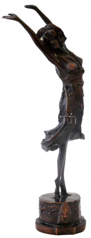 Leírás: Colinet jelzéssel: Táncosnő, festett spiáter, nagy szériás, talapzattal, hibás, m. 41 cm.
