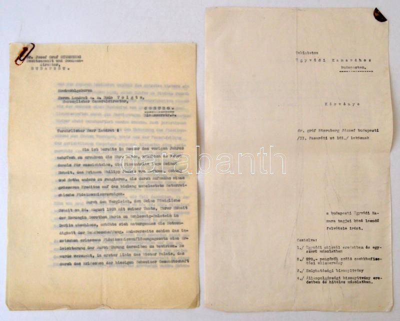 cca 1920-1940 Sternberg irat hagyaték több ügyvédi és egyéb hivatalos... https://www.darabanth.com/hu/271-Gyorsarveres/271.0/Festmeny-mutargy-papirregiseg-egyeb/Tortenelmi-dokumentumok-keziratok-erdekessegek~18/cca-1920-1940-Sternberg-irat-hagyatek-tobb-ugyvedi-es-egyeb-hivatalos-irattal-maganlevelle~II1372171