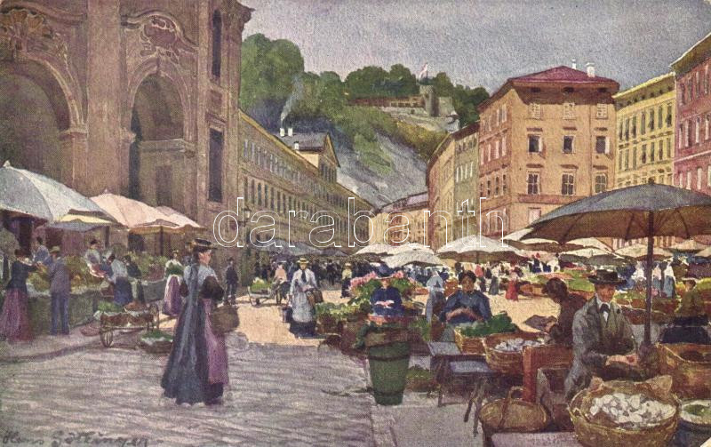 Leírás: Salzburg, Universitätsplatz, Mönchsberg / square, market, B.K.W.I. Serie 920/19. s: Götzinger (EK)