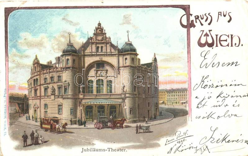 Vienna, Wien; Jubiläums-Theater / theatre, E. Storch litho (EK) https://www.darabanth.com/hu/271-Gyorsarveres/271.0/Kepeslapok/Ausztria~200020/Vienna-Wien-Jubilaums-Theater-theatre-E-Storch-litho-EK~II1378442