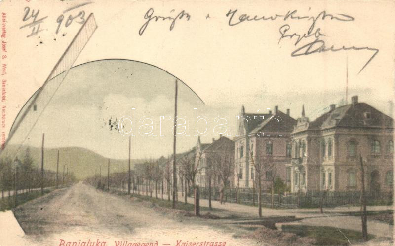 Leírás: Banja Luka, Banjaluka; Kaiserstrasse, Verlag Josef S. Wolf / street (fa)