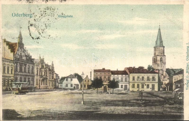 Bohumín, Oderberg; Ringplatz, Verlag O. Müller / square, tram https://www.darabanth.com/hu/271-Gyorsarveres/271.0/Kepeslapok/Cseh-Koztarsasag~200026/Bohumin-Oderberg-Ringplatz-Verlag-O-Muller-square-tram~II1374969