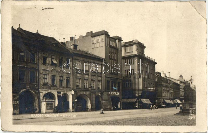 Leírás: Hradec Králové, Namesti / square, drug store, shop of V.J. Spaler (EB)