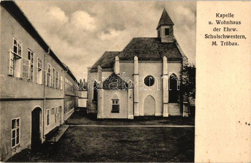 Leírás: Moravská Trebová, Mahrisch Trübau; Kapelle u. Wohnhaus der Ehrw. Schulschwestern / chapel and dormitory (fl)