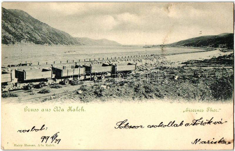 1899 Vaskapu, Eisernes Thor, Ada Kaleh; vasúti sínek, rakodó vagonok, ... https://www.darabanth.com/hu/271-Gyorsarveres/271.0/Kepeslapok/Erdely~200007/1899-Vaskapu-Eisernes-Thor-Ada-Kaleh-vasuti-sinek-rakodo-vagonok-kiadja-Hairy-Hassan-railw~II1371943