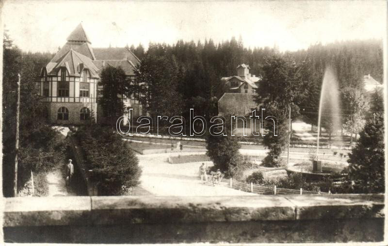 Leírás: 1934 Borszék, Borsec; szökőkút, villák / fountain, villas, Georg Heiter photo (b)