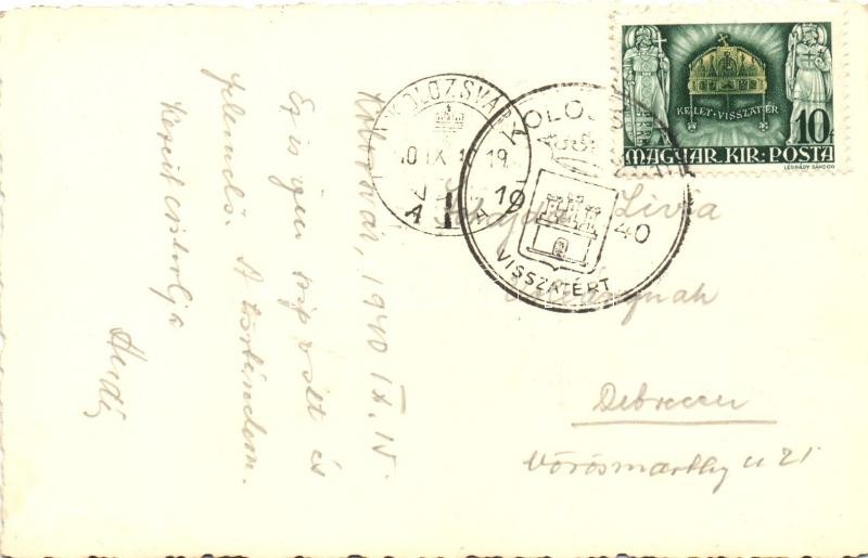 Leírás: Kolozsvár, Cluj; látkép a fellegvárból / general view from the citadel, 'Kolozsvár visszatért' So. Stpl.