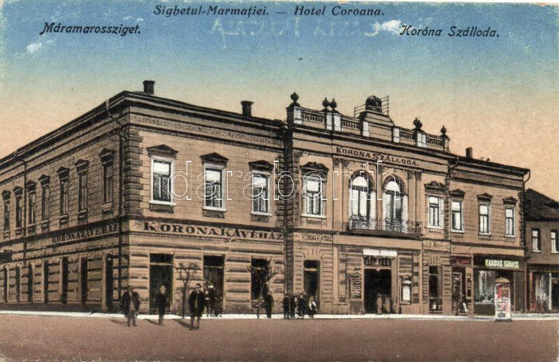 Leírás: Máramarossziget, Sighetu Marmatiei; Korona szálloda, Kardos Ignácz üzlete / hotel, shop