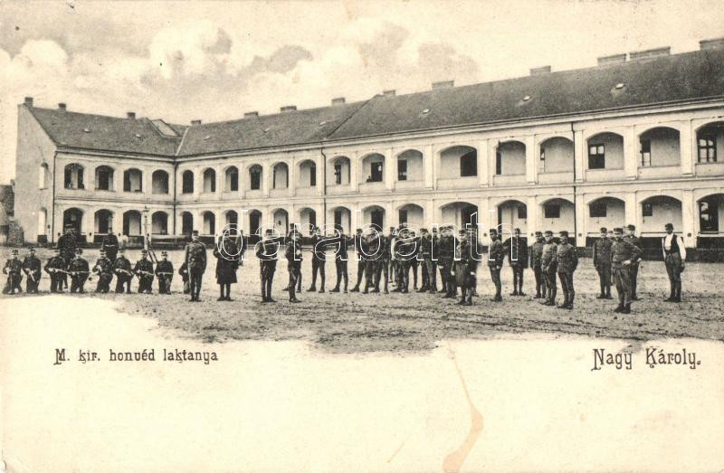 Leírás: Nagykároly, Carei; Magyar királyi honvéd laktanya, kiadja Csókás László / Hungarian military barracks (EK)