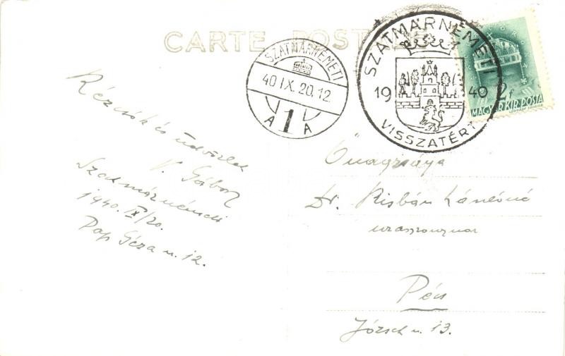 Leírás: Szatmárnémeti, Satu Mare; Deák tér, székesegyház / square, cathedral 'Szatmárnémeti visszatért' So. Stpl. photo