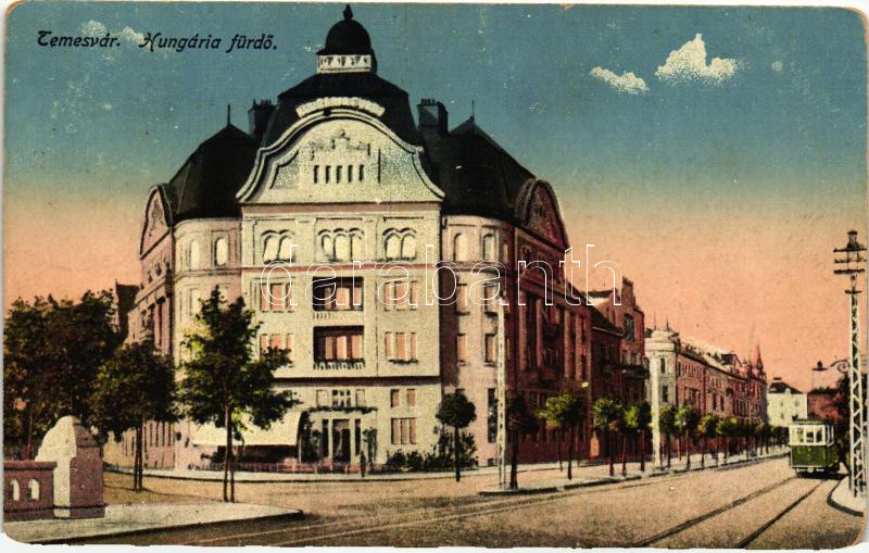 Temesvár, Timisoara; Hungária fürdő, villamos / spa, tram https://www.darabanth.com/hu/271-Gyorsarveres/271.0/Kepeslapok/Erdely~200007/Temesvar-Timisoara-Hungaria-furdo-villamos-spa-tram~II1375882