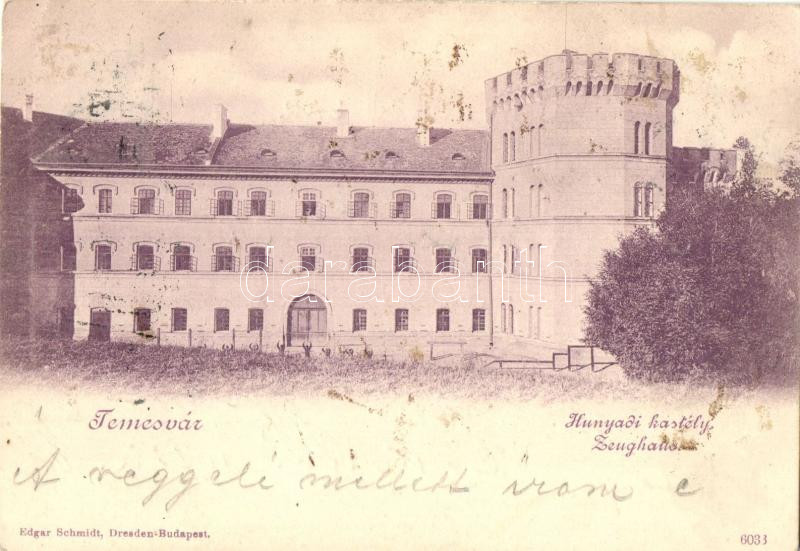Temesvár, Timisoara; Hunyadi kastély, kiadja Edgar Schmidt (fl) https://www.darabanth.com/hu/271-Gyorsarveres/271.0/Kepeslapok/Erdely~200007/Temesvar-Timisoara-Hunyadi-kastely-kiadja-Edgar-Schmidt-fl~II1378847