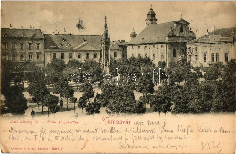 Temesvár, Timisoara; Jenő herceg tér / square (EK) https://www.darabanth.com/hu/271-Gyorsarveres/271.0/Kepeslapok/Erdely~200007/Temesvar-Timisoara-Jeno-herceg-ter-square-EK~II1372130