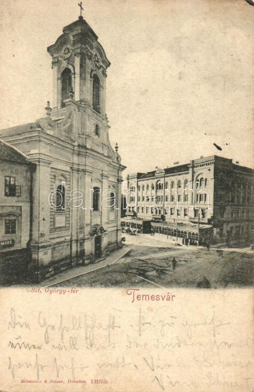 Temesvár, Timisoara; Szent György tér, templom / square, church (b) https://www.darabanth.com/hu/271-Gyorsarveres/271.0/Kepeslapok/Erdely~200007/Temesvar-Timisoara-Szent-Gyorgy-ter-templom-square-church-b~II1369578