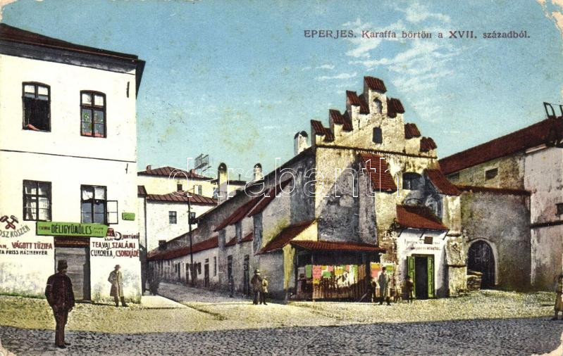 Eperjes, Presov; Karaffa börtön, csemege üzlet, kiadja Molnár Jenő / K... https://www.darabanth.com/hu/271-Gyorsarveres/271.0/Kepeslapok/Felvidek~200008/Eperjes-Presov-Karaffa-borton-csemege-uzlet-kiadja-Molnar-Jeno-Karaffa-prison-shop-EK~II1369535