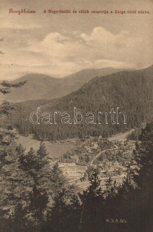 Leírás: Fenyőháza, Lubochna; Nagy szálló és villág csoportja a Zerge útról nézve, K.S.A. felvétele / hotel, villas
