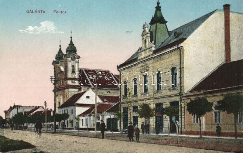 Leírás: Galánta, Galanta; Fő utca, templom, Takarékpénztár / street, church, savings bank